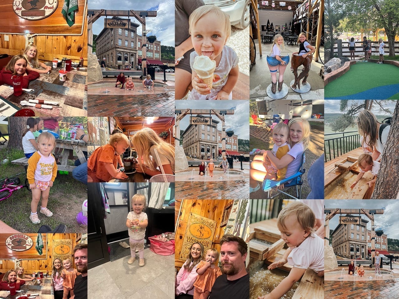 After our trail adventures we spent a slower day exploring some of our favorite nearby towns like Spearfish, Lead, and our personal favorite, Deadwood. Deadwood has this old west charm that never gets old. We spent hours walking around, grabbing ice cream, and letting the kids play in the fountain downtown. They loved it so much and we could have stayed there all day just watching them play.
